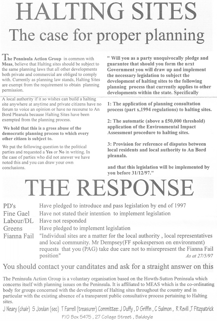 ‘Peninsula Action Group News’ -1997 proposed Halting Sites in Howth » PAG2