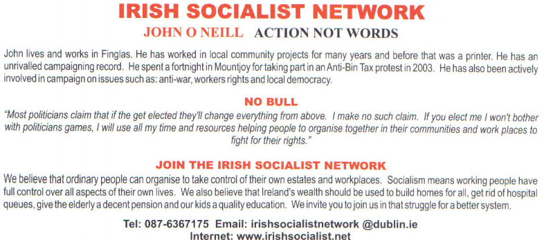 John O’Neill -Irish Socialist Network -2007 GE -Dublin North West » jon97b