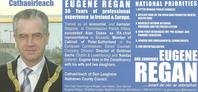 From the 2007 General Election in Dun Laoghaire, Fine Gael candidate Senator Eugene Regan.