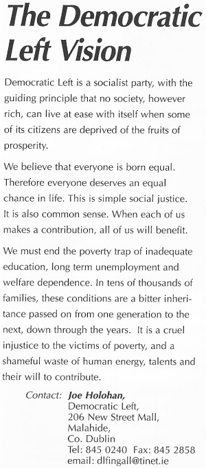 It was the last day that The Democratic Left appeared on a ballot paper (There was a by-election in Limerick East on the same day).