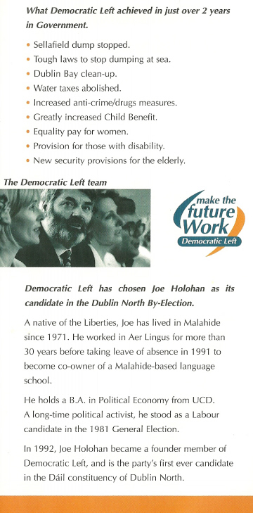 Joe Holohan of The Democratic Left from the Dublin North by -Election held on the 11th of March 1998.