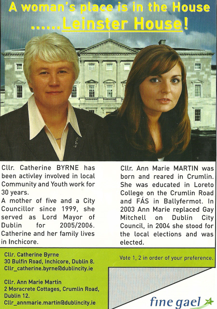 ‘A Woman’s place is in the House .. Leinster House!”-Catherine Byrne, Ann Marie Martin -Fine Gael 2007 Dublin SC » womaninhuse07a