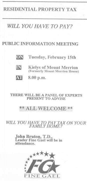 Fine Gael Flyer advertising Anti Property tax meeting in 1994. » proptaxkiely