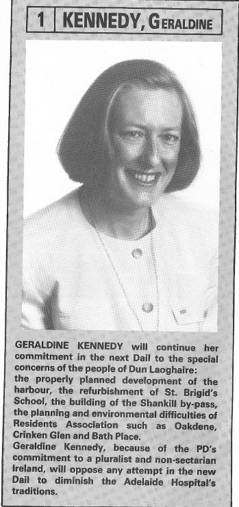 Geraldine Kennedy (large leaflet) -Progressive Democrats – Dun Laoghaire 1989 General Election » Gkennedy89a