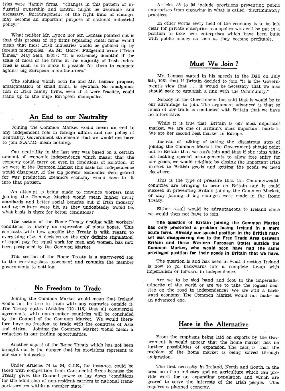 Irish Workers League – No to The Common Market Leaflet 1961 » WLEC3a