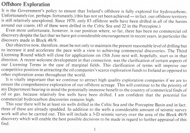 Details are also given regarding the level and nature of oil/gas exploration of our coast.
