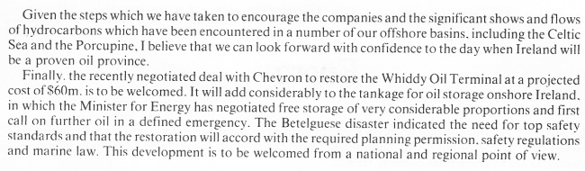 Part of it is taken up with the then flowing new Natural Gas from Kinsale. A few memories are jogged in the fact that the UK government rejected plans to ‘supply Northern Ireland.