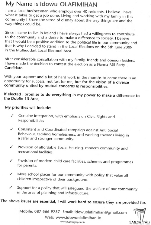 Idowu Olafimihan -Fianna Fail -2009 LE Mulhuddart » idowu2