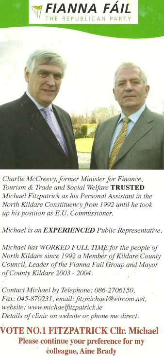 Leaflet from Michael Fitzpatrick -Fianna Fail -Kildare North 2007 General Election » mfitzkildare07b