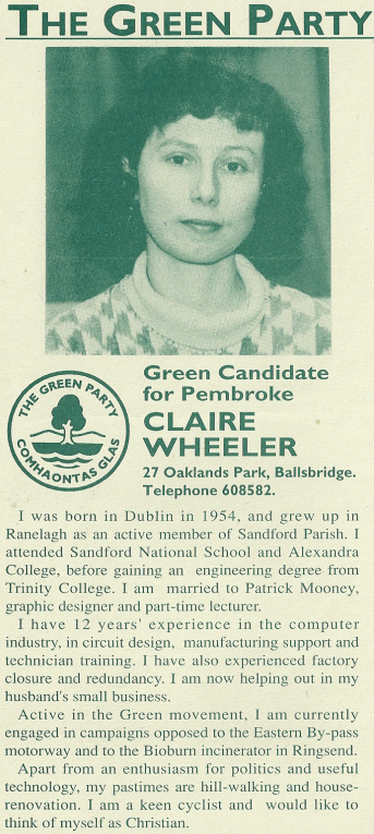 Claire Wheeler -Green Party -1991 Local Elections -Pembroke » wheeler91a