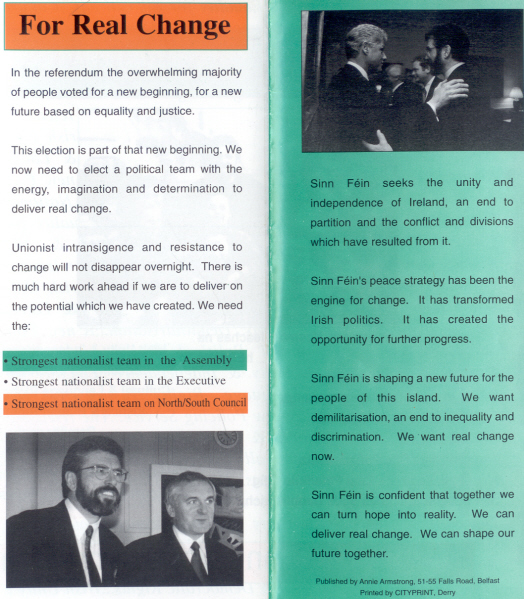 Sinn Fein Leaflet from the 1998 Assembly Elections » GFAsf1b