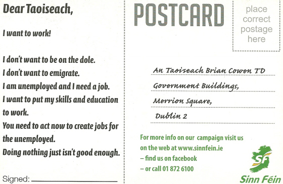 “Greetings from the Dole Queue ….wish you were here” postcard -Sinn Fein » dolecard