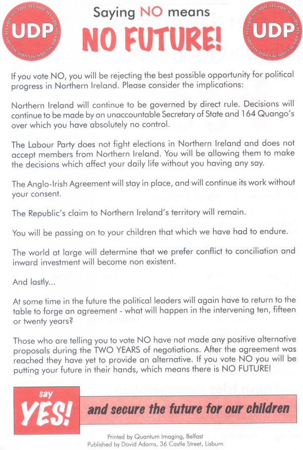 Ulster Democratic Party (UDP) – ‘Saying No means NO FUTURE’ -Good Friday Agreement » GFAUDP1