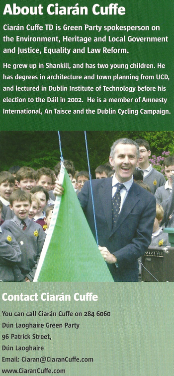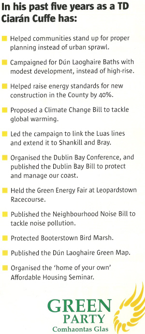 It’s time to change the government writes Ciaran Cuffe running for the Green Party in Dun Laoghaire in the 2007 General Election. A feeling many share with him 3 years on.