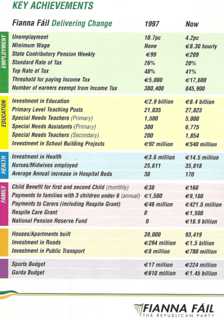 On the reverse are listed key achievements. Amongst these are the number of houses being built. In the year prior to 2007 the incredible total of 93,149 houses were built.