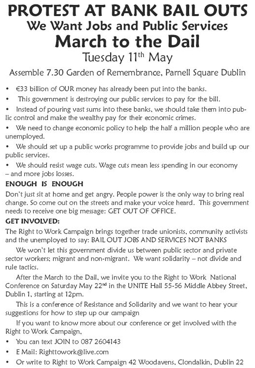 Flyer for March to Dail to ‘Protest At Bank Bailouts’ -Right to Work Campaign 2010 » banks2