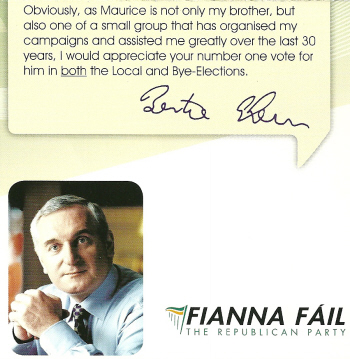 Regards from Bertie- Letter looking for support for the Brother Maurice Ahern -2009 Local Elections,Dublin Central By-Election » regards3