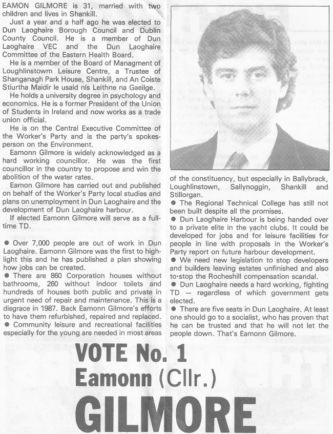 Eamon Gilmore -Workers Party -1987 General Election Dun Laoghaire » gilmore87fba