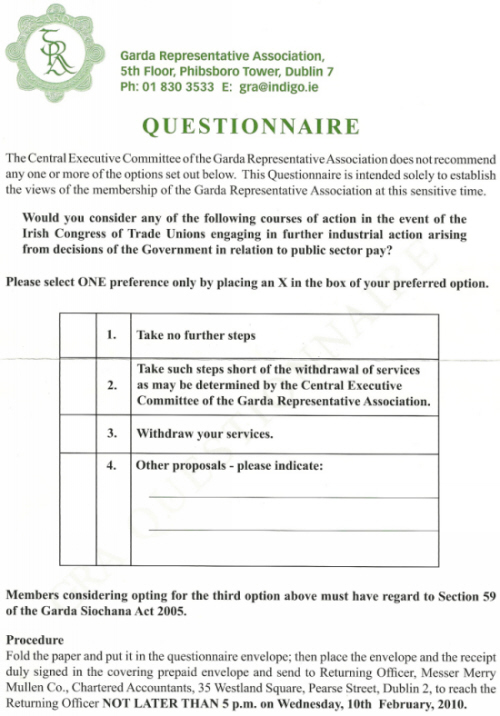 Garda Representative Association (GRA) Questionnaire regarding Industrial Action 2010 » GRAballota