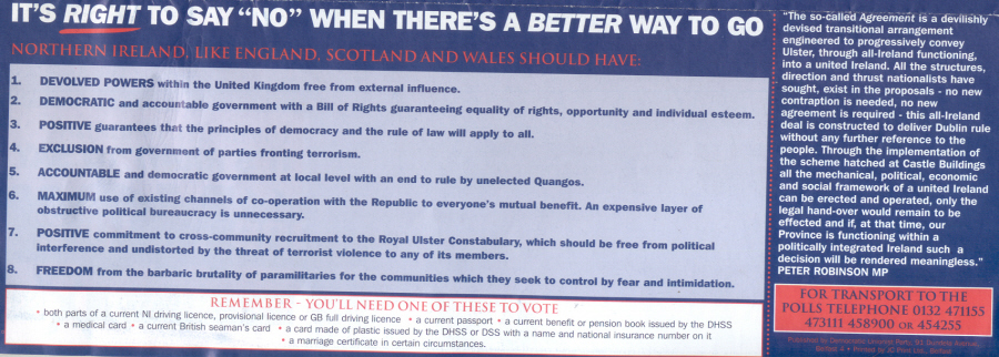 ‘ITS RIGHT TO SAY NO’ – Democratic Unionist Party – No to the Good Friday Agreement » DUPGFA2