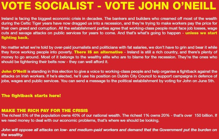 John O’Neill Leaflet -Irish Socialist Network -2009 Local Elections Ballymun-Finglas » election09b1
