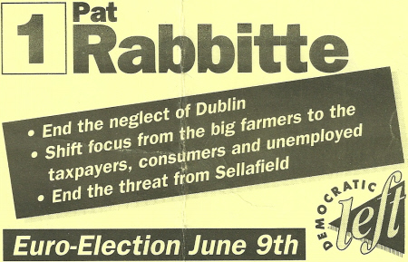 From the 1994 European Elections a canvass card for Democratic Left candidate Pat Rabbitte running in Dublin.