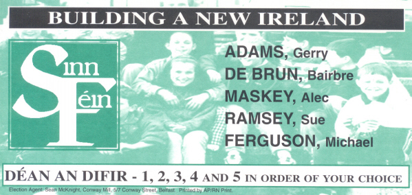 Flyer for Gerry Adams- 1998 Assembly Elections -West Belfast » GAwestbelfatssf1