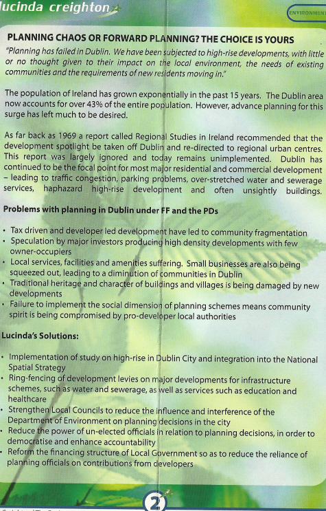 A leaflet produced by Fine Gael candidate Lucinda Creighton for the the 2007 General Election campaign in Dublin South East.