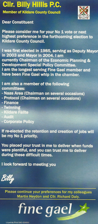 Billy Hillis -Fine Gael -Athy 2009 Local Elections » bhills09b