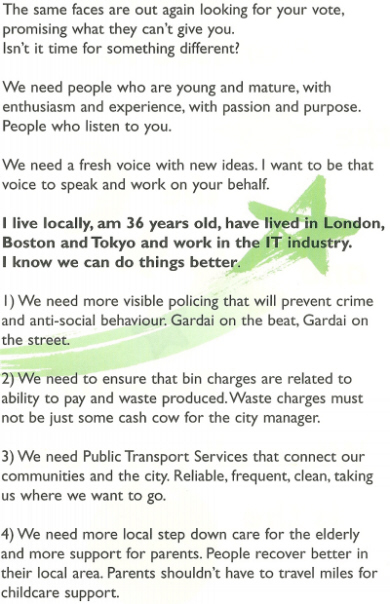 ‘Has Someone Promised You the Sun the Moon and the Stars Recently?….’ -Dan Sullivan – Fine Gael -2004 LE Artane » dsullivan04smsb