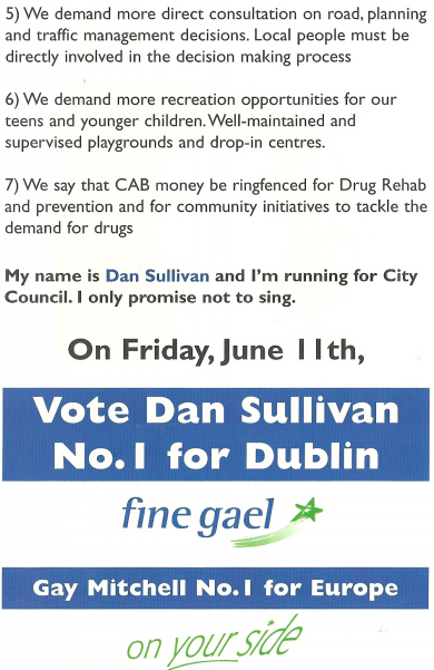 ‘Has Someone Promised You the Sun the Moon and the Stars Recently?….’ -Dan Sullivan – Fine Gael -2004 LE Artane » dsullivan04smsc