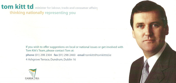 From 2001 a leaflet from the then Minister for Labour,Trade and Consumer Affairs, Tom Kitt advertising his new internet site.