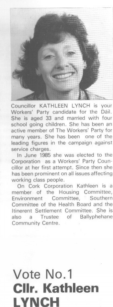 Kathleen Lynch -The Workers Party -1987 GE Cork South Central » klynch87a
