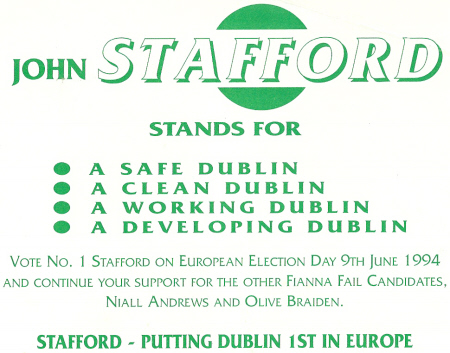 Flyer for John StaFFord -Fianna Fail -1994 European Elections Dublin » ffstaffb