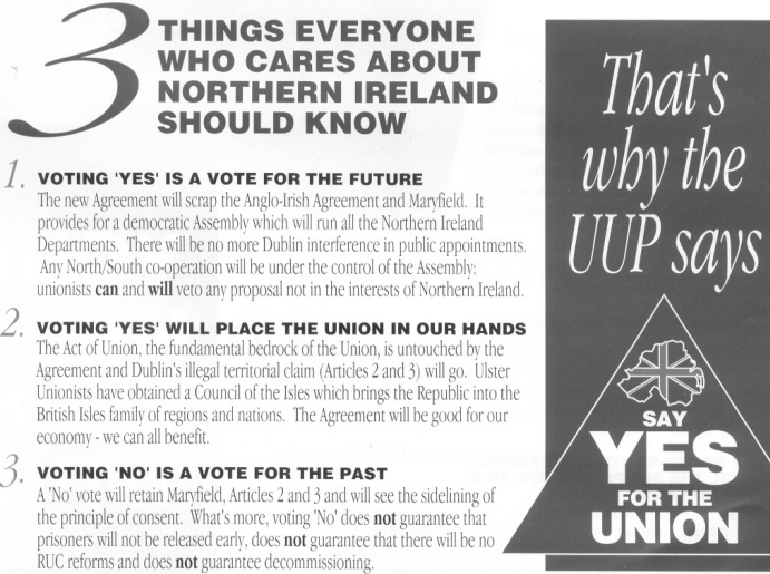 ‘Say Yes For The Union’ -Ulster Unionist Party Good Friday Agreement Leaflet » UUPGFA3