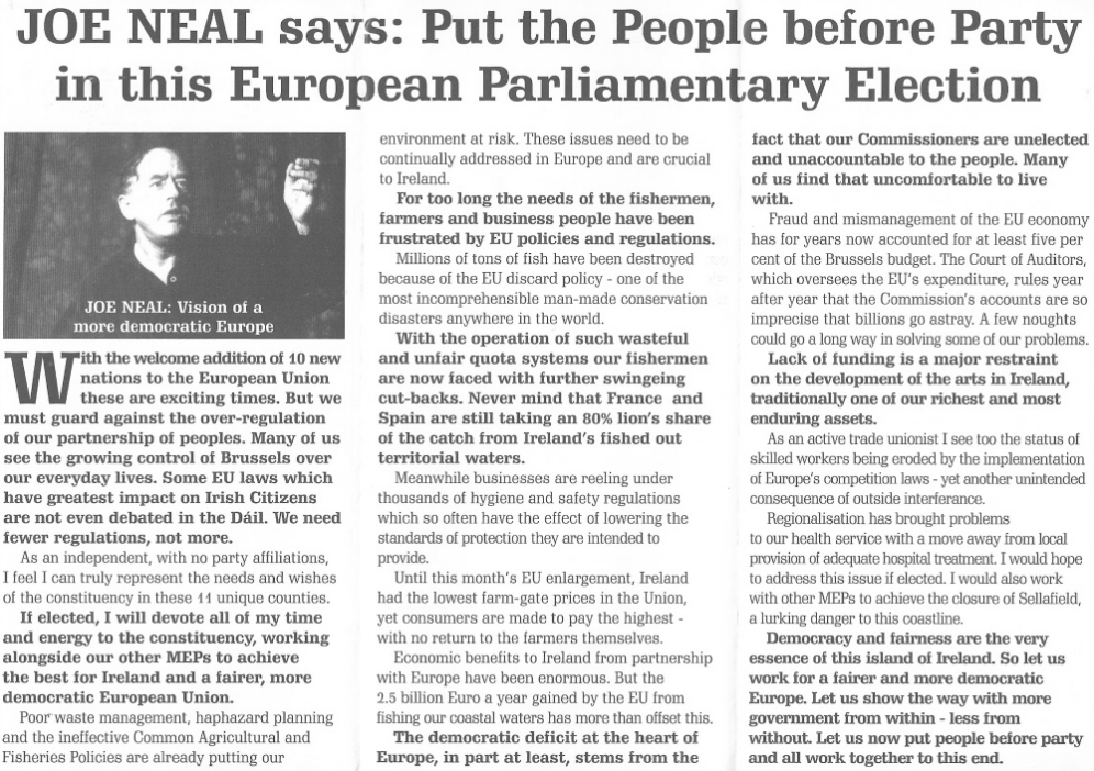 Joe Neal -Independent -Ireland East ,2004 European Elections » jneal044