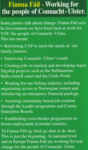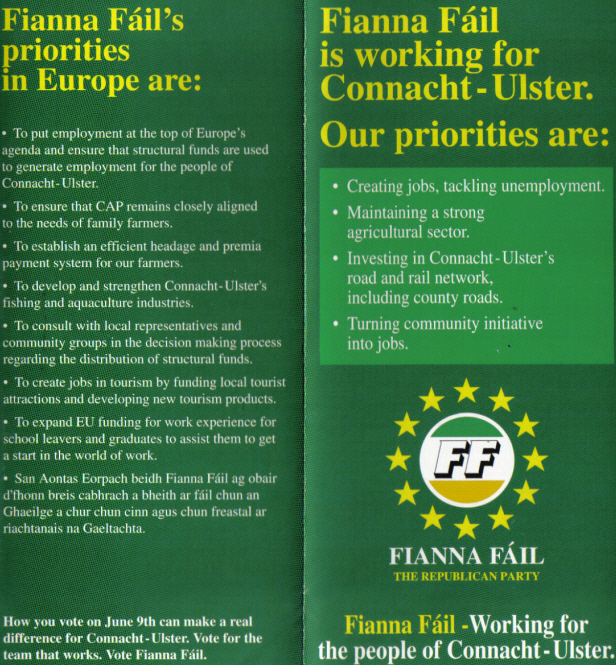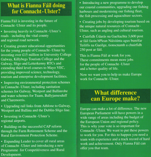 From the 1994 European Elections a leaflet for Fianna Fail candidates Mark Killilea and Pat the Cope Gallagher.