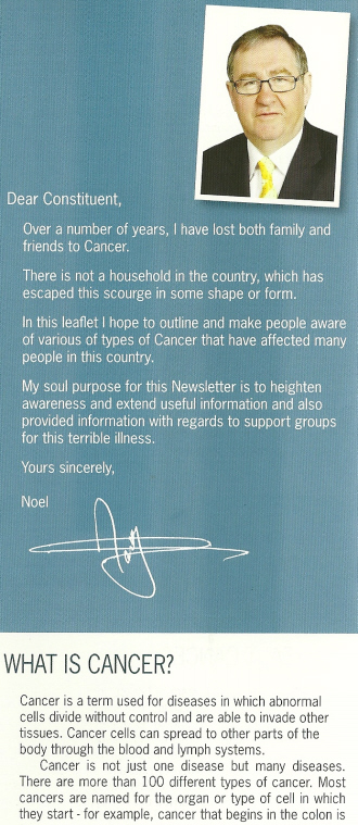 Cancer Awareness Information Leaflet from Fianna Fail TD Noel O’Flynn » cancer2