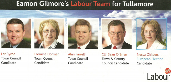 From the 2009 Local Elections for Tullamore Town Council a flyer for Labour candidate Alan Farrell. Farrell failed to be elected.