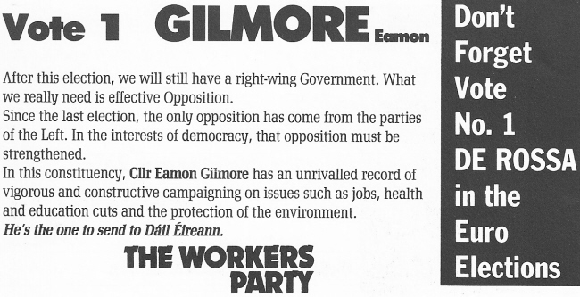Leaflet for Eamon Gilmore -Workers Party – 1989 General Election Dun Laoghaire » gilmore89glasses2