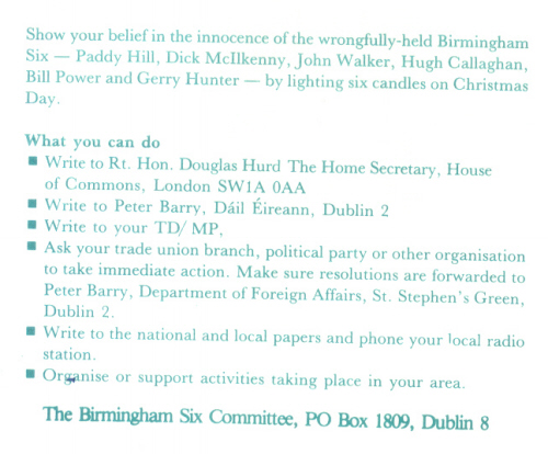 “The Birmingham Six , Remember Them This Christmas” -Christmas Card issued by The Birmingham Six Committee mid 80s » bminghan6-xmas-cardinside1