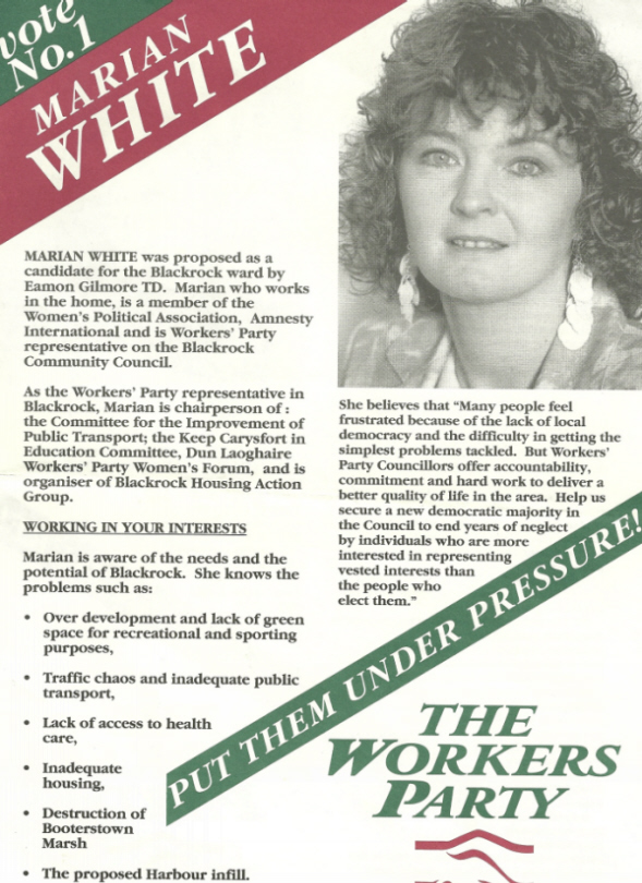 Marian White Leaflet -Workers Party -1991 Local Elections Blackrock » marianwhite91a