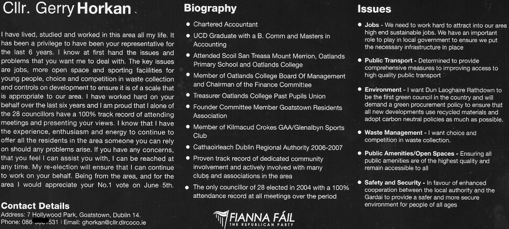 Gerry Horkan -Fianna Fail -Stillorgan -2009 Local Elections » ghorkan09b