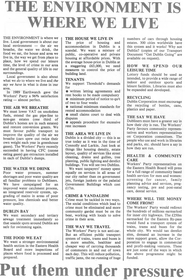 ‘A Voice For Donnybrook’ -Tom Crilly, Angie Murphy -Workers Party- 1991 Local Elections » 91donnybrookb