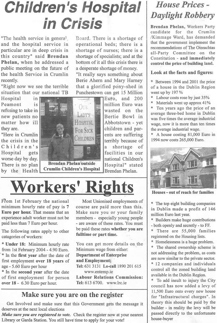 Campaign News -The Workers’ Party Crumlin-Drimnagh -Brendan Phelan -2004 Local Elections – » bphelan04b