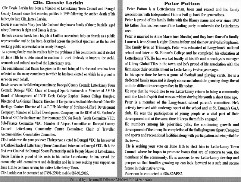 Dessie Larkin , Peter Patton -Independent Fianna Fail -2004 Letterkenny Town Council » larkinpatton04b