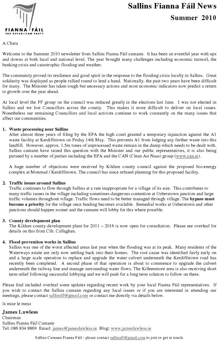 Sallins Fianna Fail News – Summer 2010 » sallinsffa