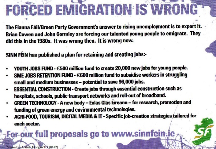 “It wasn’t cool in the 1980s. It’s not cool now.” -An eye catching Sinn Fein Anti Emigration flyer » EmigrationB