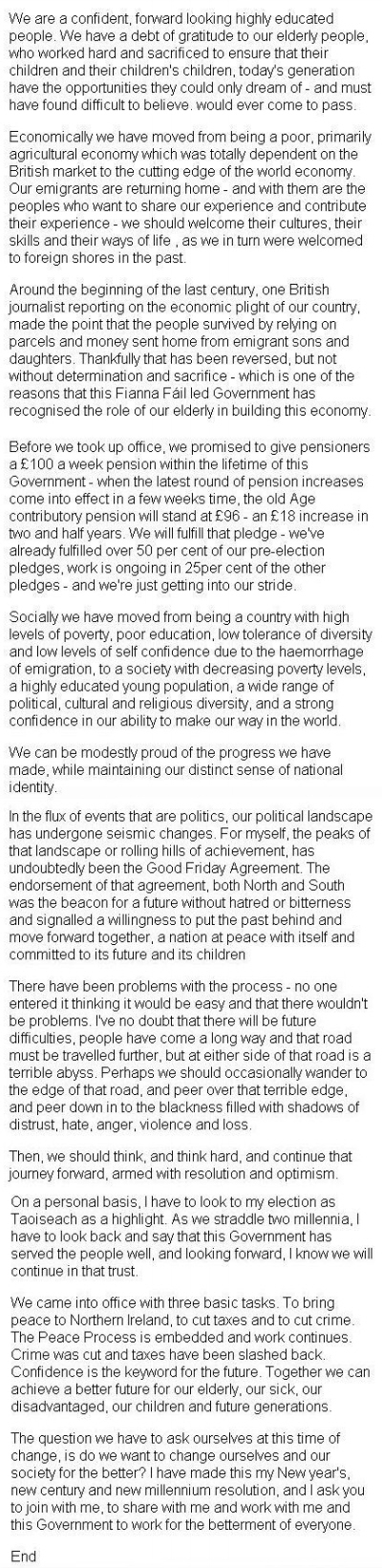 Taoiseach’s Special Millennium Message -Bertie Ahern late 1999 » milleniumbertie2