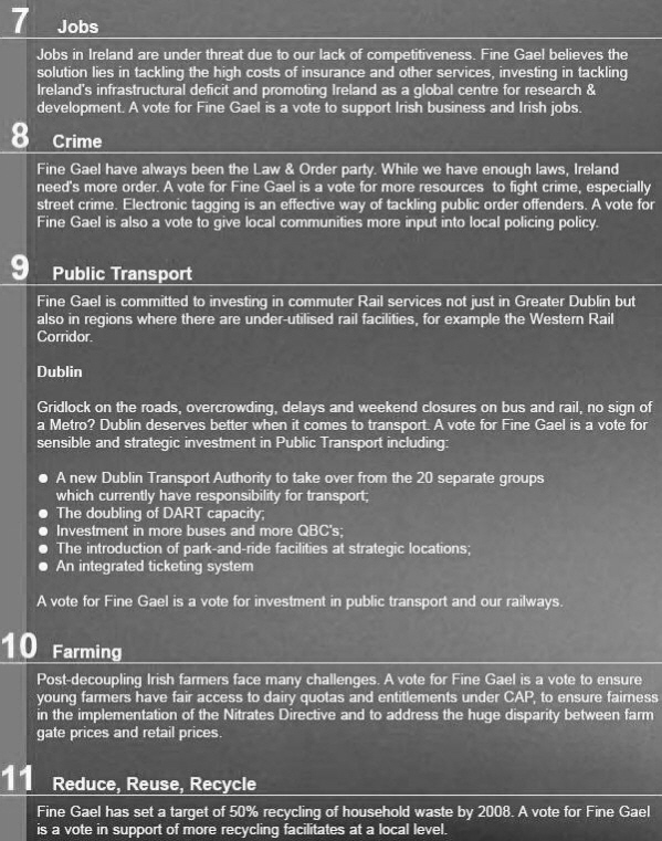 From the 2004 Local and European Election Campaign a leaflet from Fine Gael entitled